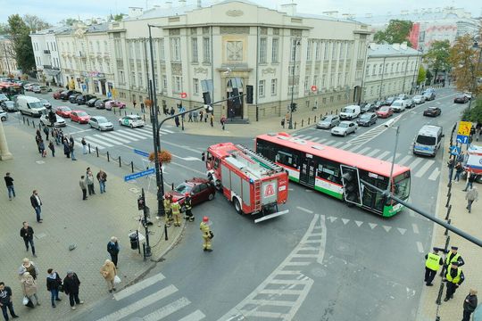 Uderzył w słup na roku ul. Kołłątaja i Krakowskiego Przedmieścia