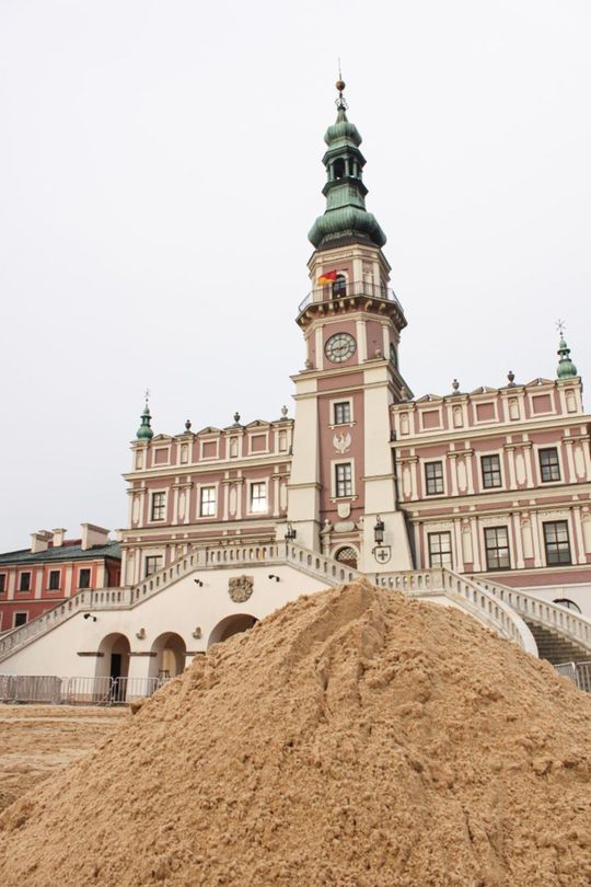 Ruszyły prace przy budowie lodowiska na rynku w Zamościu