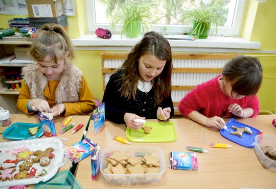Malowanie pierników świątecznych przez uczniów z Marianki