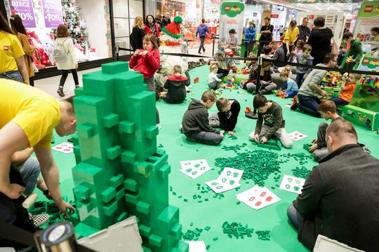 Rebuild the world, ubieranie choinki Lego w Skende Shopping
