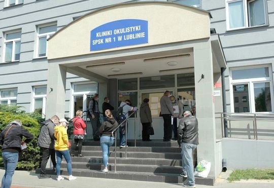 Kolejka przed kliniką okulistyczną w Lublinie