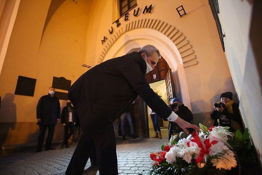 PILECKI - napis z biało-czerwonych zniczy na dziedzińcu Zamku Lubelskiego