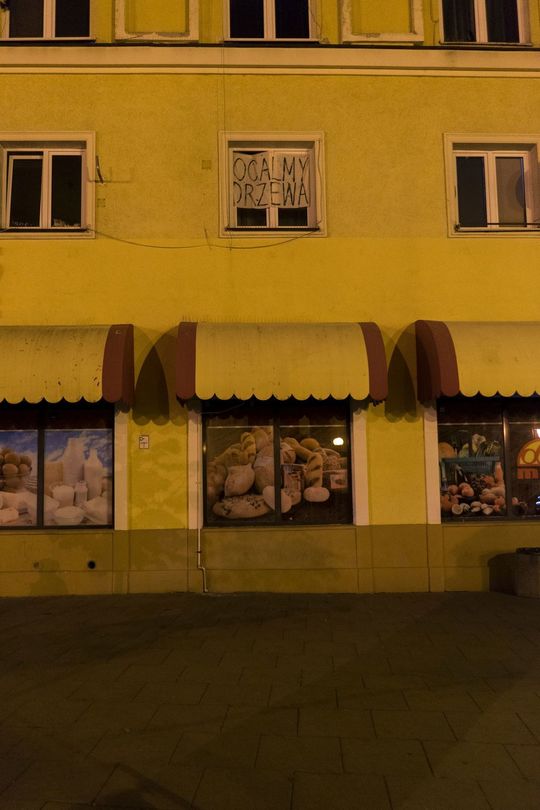 Zdjęcie: Transparenty w oknach, kartki na drzewach. Przeciwk...