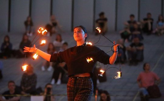 Wieczorny fireshow przed CSK