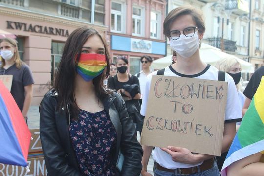 Zdjęcie: Manifestacja osób LGBT przed lubelskim ratuszem