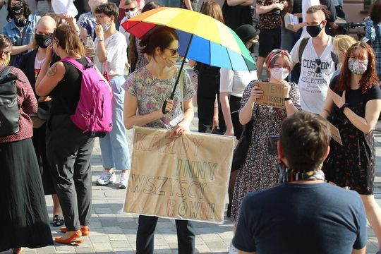 Zdjęcie: Manifestacja osób LGBT przed lubelskim ratuszem
