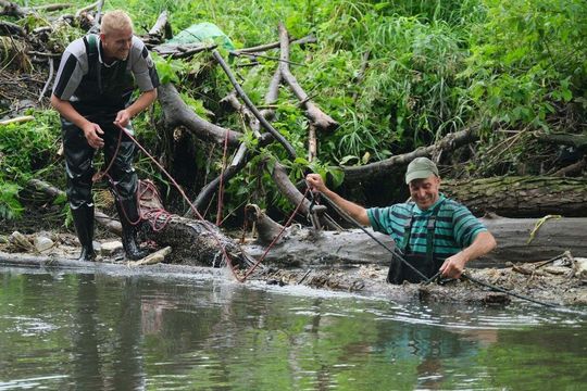 Sprzątanie śmieci zalegających w Bystrzycy na wysokości miejscowości Długie w gminie Wólka