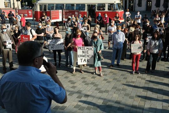 Protest kobiet przeciwko wypowiedzeniu przez Polskę Konwencji Antyprzemocowej
