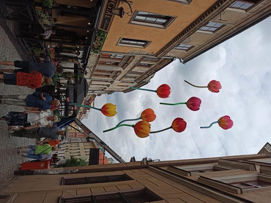Kwiaty zawisły nad ulicą Grodzką