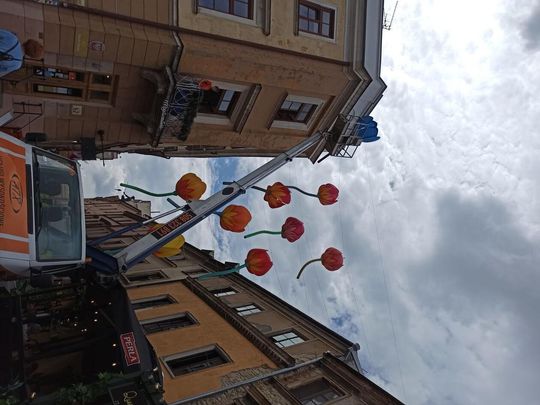 Zdjęcie: Kwiaty zawisły nad ulicą Grodzką