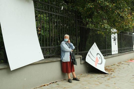 Zdewastowane plakaty na parkanie Ogrodu Saskiego