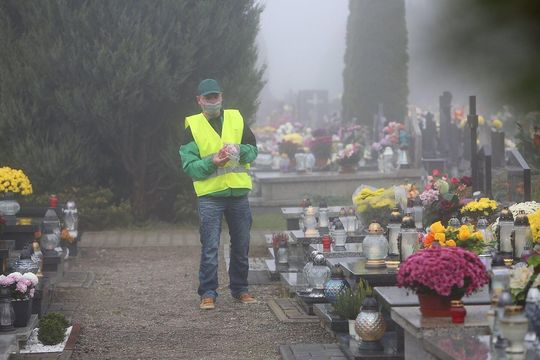 Kazimierzówka - rozkładanie na cmentarzu kwiatów i zniczy