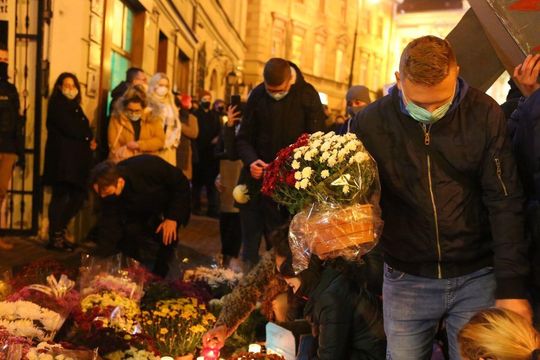 Chryzantemy, wiązanki i znicze przed siedzibą PiS w Lublinie