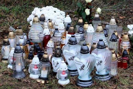 Kwiaty i znicze na miejscu wypadku w Opatkowicach