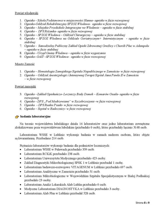 Zdjęcie: Ogniska epidemiczne w województwie lubelskim. 15 li...