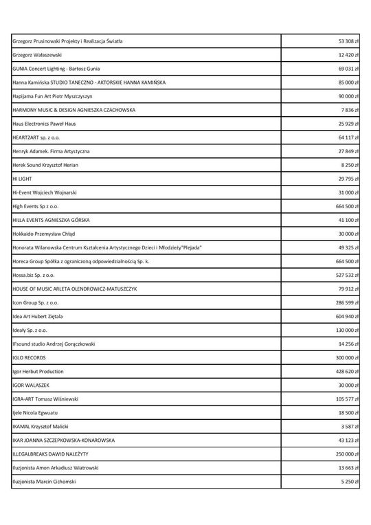 Fundusz Wsparcia Kultury. Lista beneficjentów