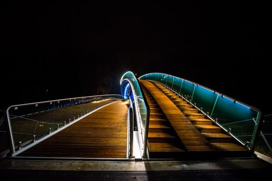 Zdjęcie: Nowa kładka na Bystrzycy z podświetleniem