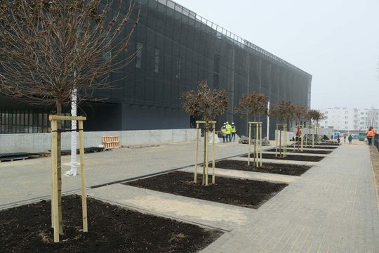 Prace wykończeniowe w nowej hali sportowej Uniwersytetu Medycznego