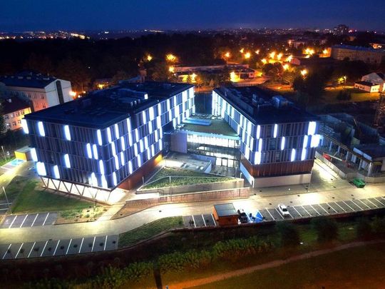 18.08.2020 Lublin ul. Głęboka. Kampus Zachodni UMCS. Podświetlone nowe budynki Wydziałów Politologii i Psychologii.