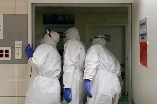 Medycy z "czerwonej strefy" oddziału ratunkowego SPSK 4 w Lublinie.