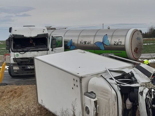 Zdjęcie: Strzeszkowice Duże. Zderzenie busa z ciężarówką