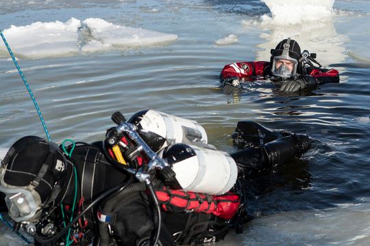 Zdjęcie: Ćwiczenia straży pożarnej nad Zalewem Zemborzyckim