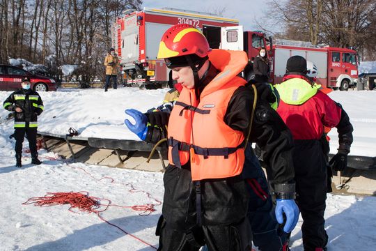 Ćwiczenia ratowników na Zalewie Zemborzyckim w Lublinie