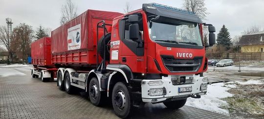 Straż pożarna transportuje ulotki na temat Covid-19