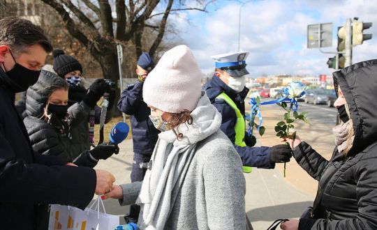 Zdjęcie: Kwiaty i upominki od policji okazji dnia kobiet