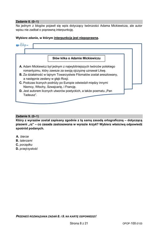 Próbny egzamin ósmoklasistów 2021. Język polski