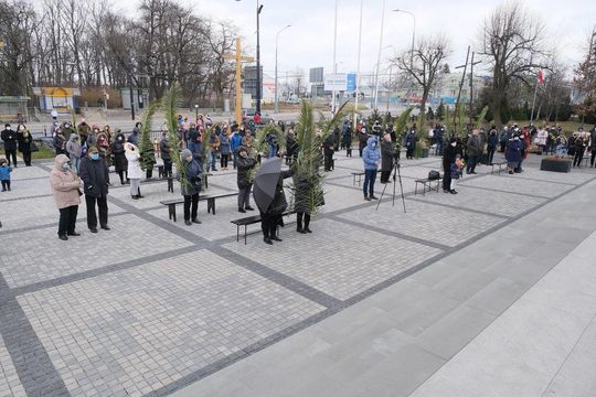Niedziela palmowa w kościele pw Michała Archanioła. Msza przed kościołem