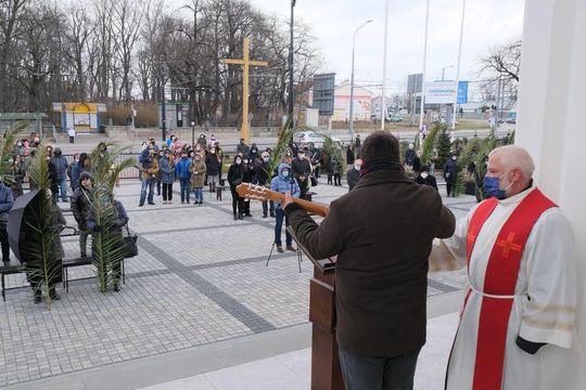 Niedziela palmowa w kościele pw Michała Archanioła. Msza przed kościołem