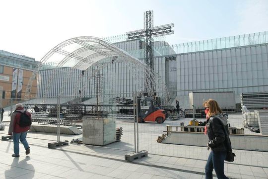 Scena powstająca na placu Teatralnym