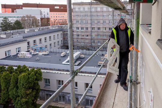 Zdjęcie: Montowanie nowego napisu na SPSK nr 4