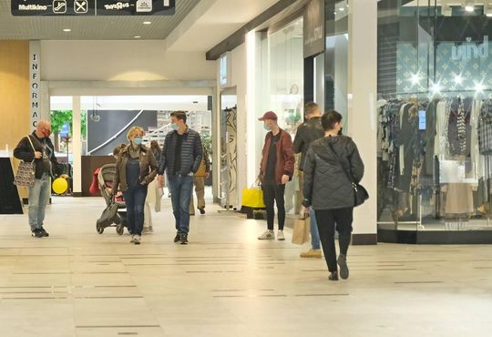 Otwarte sklepy w Galerii Olimp i kolejka klientów przed TK Maxx
