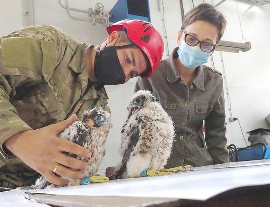 Zdjęcie: Obrączkowanie młodych sokołów z komina elektrociepł...