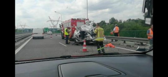 Samochód GDDKiA zmiażdżony przez ciężarówkę