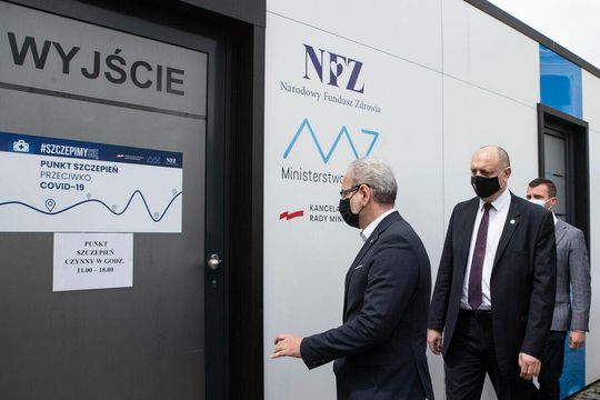 Spalony punkt szczepień w Zamościu i konferencja ministra zdrowia
