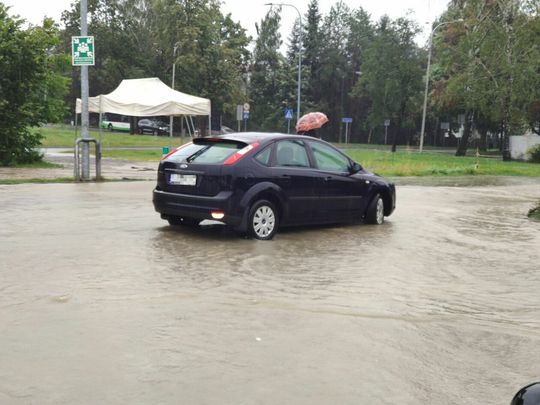 Jezioro na parkingu Biedronki w Lublinie