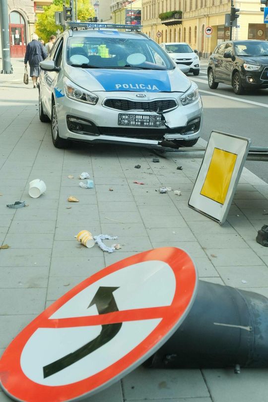 Pościg za motocyklistą. Rozbity jest jeden z radiowozów
