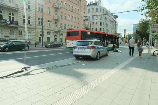 Pościg za motocyklistą. Rozbity jest jeden z radiowozów