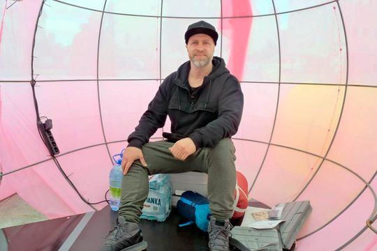 Happening Mikhaila Gulina przed Centrum Kultury