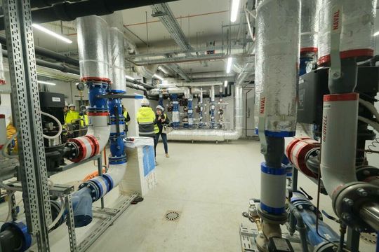 Prace wykończeniowe w nowym budynku szpitala SPSK 1 i panorama miasta z lądowiska