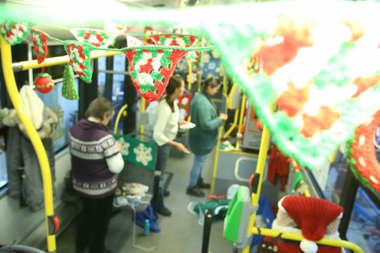 Trolejbus cały w ozdobach