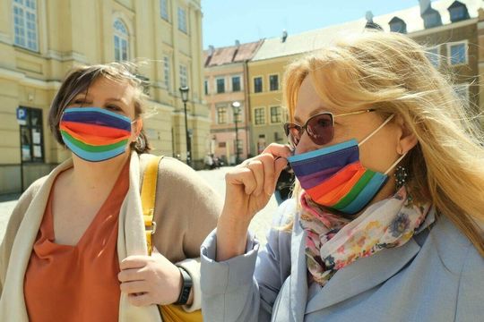 MAJ. UL. RYNEK EPIDEMIA KORONAWIRUS OBOSTRZENIA. STREFA CZERWONA PRZECHODNIE W MASKACH OCHRONNYCH.