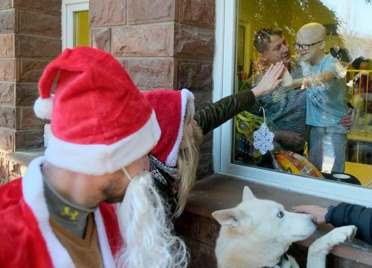 Grudzień. Oddział Onkologii Hematologii i Transplantologii Uniwersytecki Szpital Dziecięcy. Akcja OnkoOkno dla dzieci przebywających na leczeniu. Przekazanie prezentów dla pacjentów oraz pomp infuzyjnych.