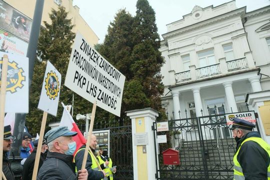 Zdjęcie: Pikieta kolejarzy z NSZZ Solidarność przed konsulat...