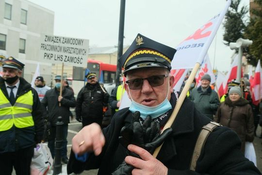 Zdjęcie: Pikieta kolejarzy z NSZZ Solidarność przed konsulat...