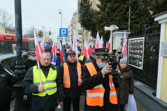 Zdjęcie: Pikieta kolejarzy z NSZZ Solidarność przed konsulat...