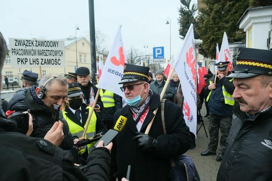 Zdjęcie: Pikieta kolejarzy z NSZZ Solidarność przed konsulat...